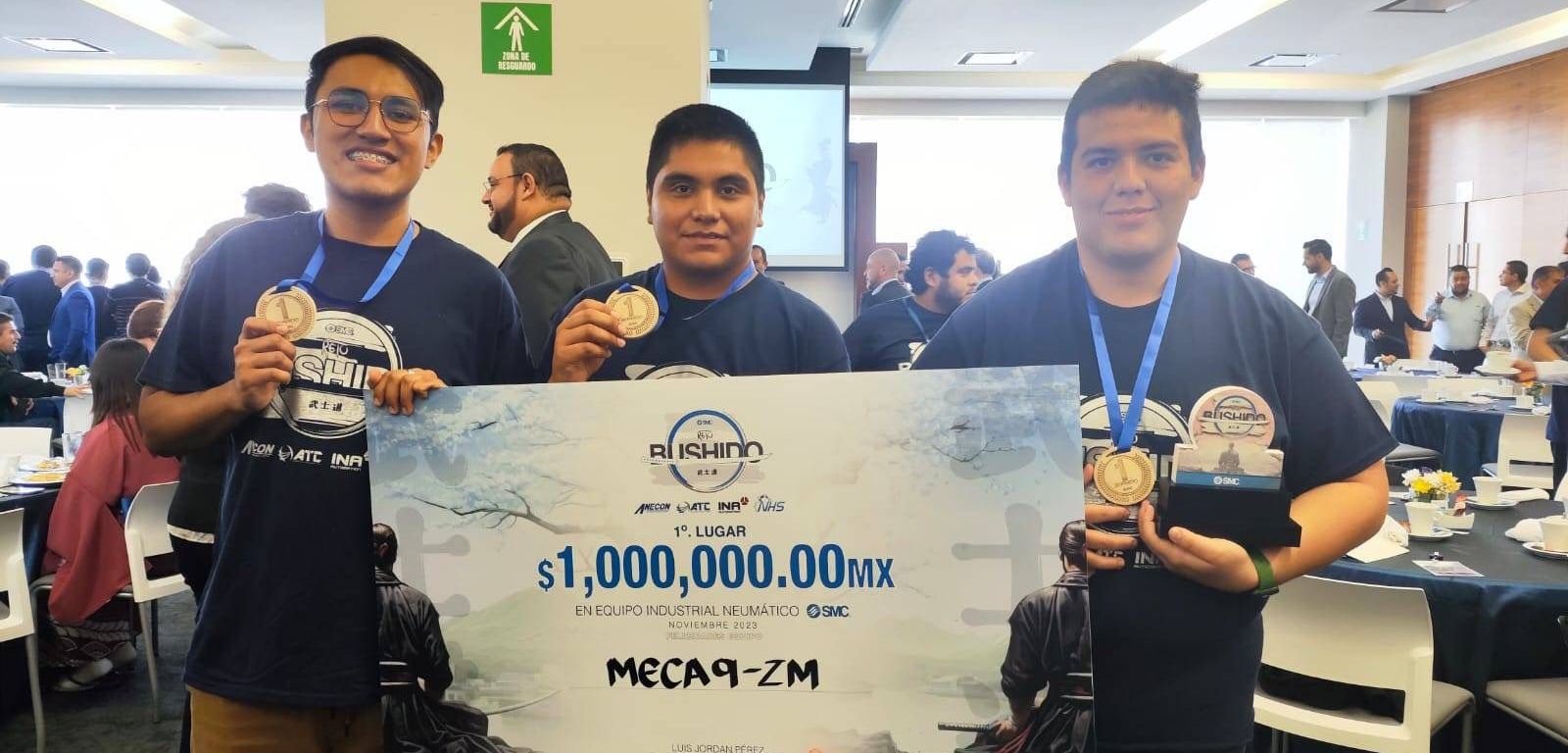 El primer lugar lo obtuvo el equipo integrado por los alumnos: Daniel Ramsés Maldonado Salazar, José Vicente Rivera Sánchez y Alán Alejandro Álvarez Ramírez quienes integran el equipo MECA9-ZM y su premio consistió en un millón de pesos de equipamiento.