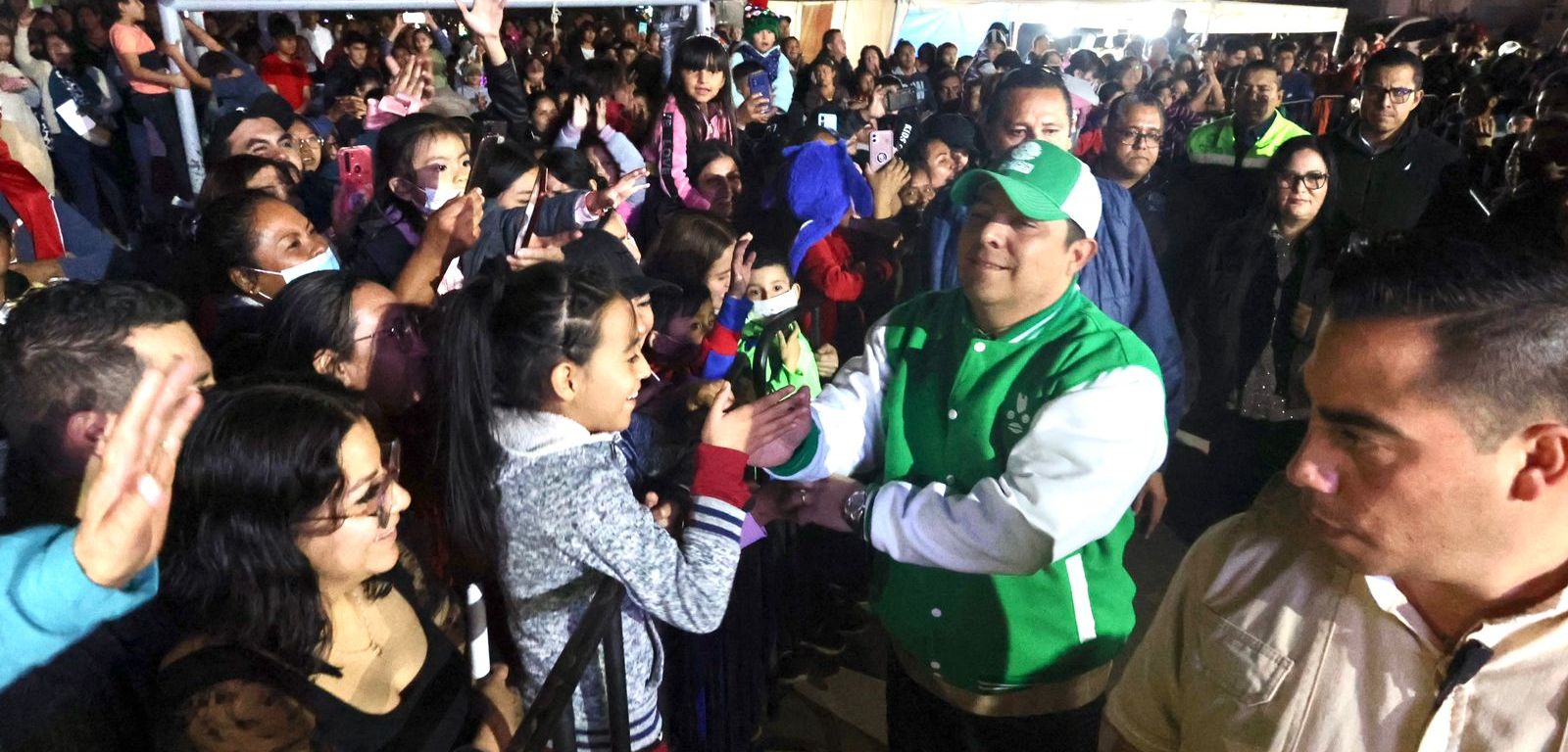 El Gobernador llevó, regalos, dulces y el programa invernal a las y los habitantes de la colonia Popular, Ciudad Satélite y Villa de Pozos