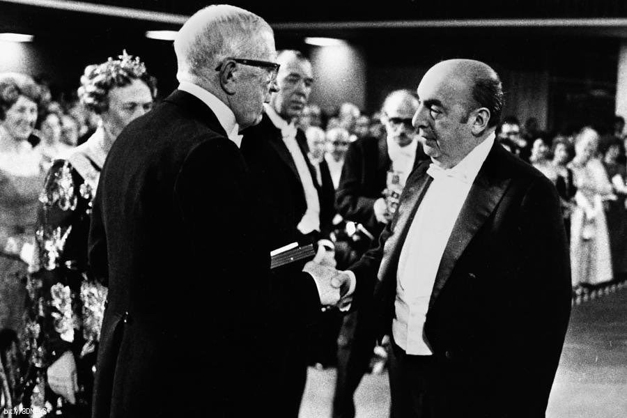 El poeta chileno Pablo Neruda recibe el Premio Nobel de Literatura en Suecia.