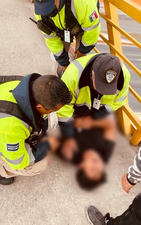 Esta mañana, oficiales de Policía Vial auxiliaron a un joven que presentaba una crisis emocional e intentaba arrojarse desde un puente peatonal ubicado en la avenida Salvador Nava Martínez. La oportuna intervención de los agentes ayudó para que el joven desistiera de su intento de quitarse la vida.