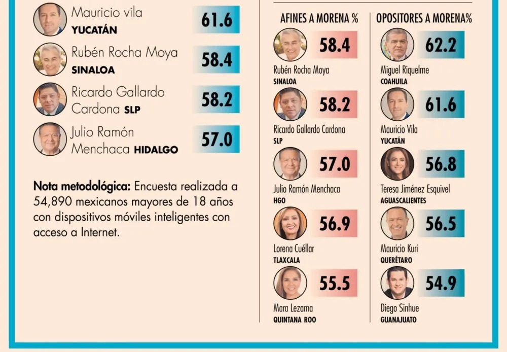 El Gobernador de San Luis Potosí obtuvo el cuarto lugar general, segunda posición de las y los gobernadores afines a Morena y el primer sitio de la región bajío, lo que resalta el liderazgo logrado