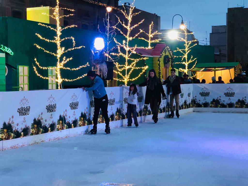 En la plaza de Fundadores, la pista de patinaje sobre hielo, casitas, árboles iluminados, el buzón para dejar las cartas a Santa Claus y el árbol monumental, son el atractivo favorito de las y los visitantes.