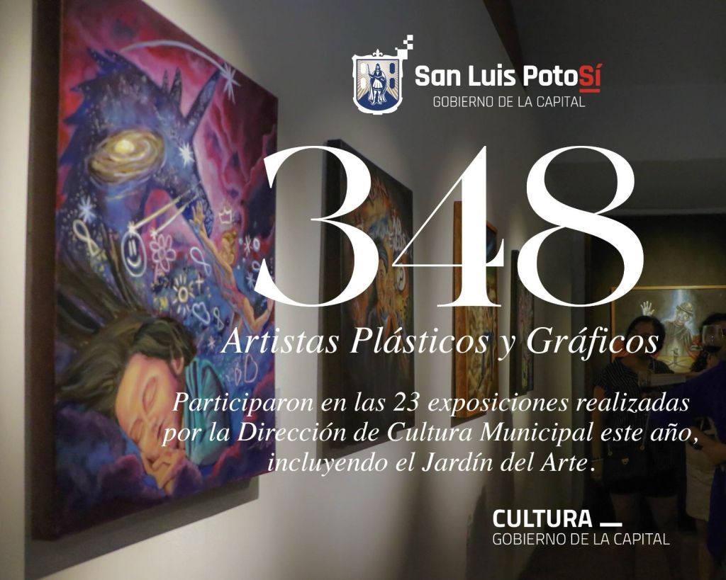 La Dirección de Cultura Municipal realizó durante el presente año 23 exposiciones de pintura, fotografía y diseño, en las que participaron 348 artistas potosinos y nacionales, lo que permitió impactar en cerca de 600 mil potosinos y visitantes, indicó Daniel García Álvarez de La Llera, Director de Cultura Municipal.