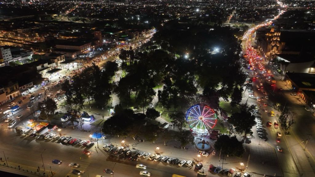 La Rueda de la Fortuna se suma al atractivo alumbrado navideño que engalana el Centro Histórico, que ofrece un ambiente único y mágico para todos los potosinos.