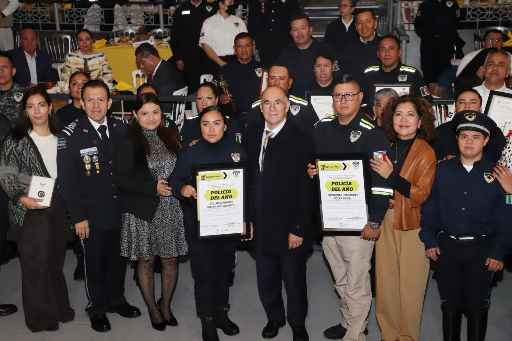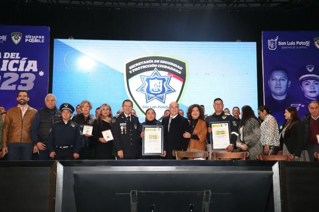 En el marco del Día del Policía 2023, el Alcalde Enrique Galindo Ceballos entregó los premios de Policía del Año, con estímulo económico de 100 mil pesos, así como reconocimientos a los policías que cumplieron de 5 a 30 años de servicio y a los ciudadanos que han realizado acciones de colaboración con la Secretaría de Seguridad y Protección Ciudadana (SSPC) del Ayuntamiento de San Luis Potosí.