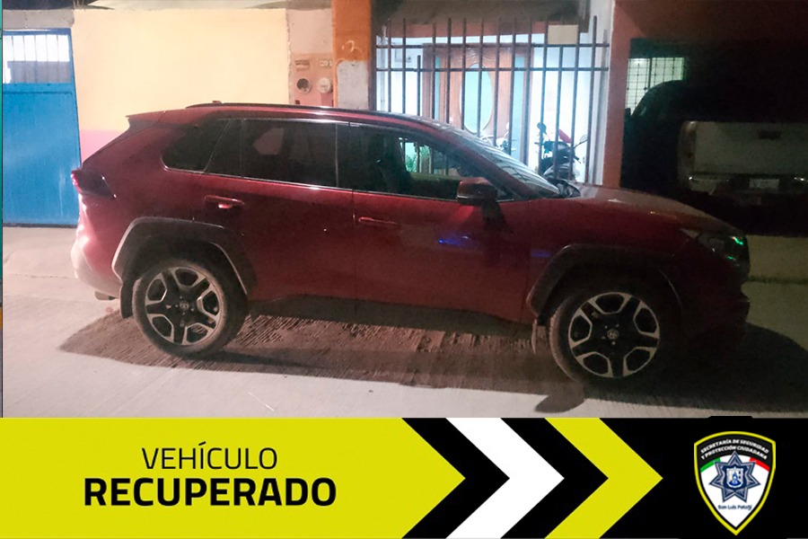 El segundo vehículo recuperado, una camioneta marca Toyota Rav4 color rojo, fue localizada en aparentes condiciones de abandono en patrullajes sobre la colonia Guanos. Los oficiales municipales notaron su presencia en la calle Cerrada del Sauce, al inspeccionarla se encontraron cinco rines con llantas al interior, de acuerdo con la base de datos policial fue reportada como robada el 23 de diciembre del presente año en la zona industrial.