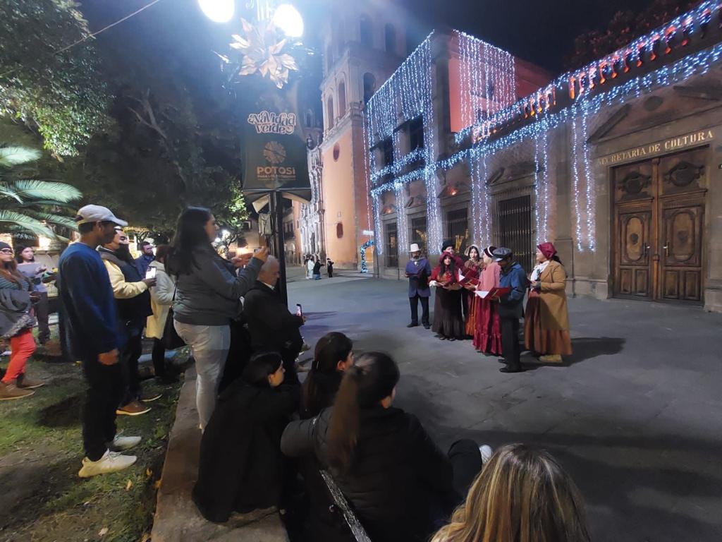 Como parte de las actividades que organiza el Gobierno del Estado a través de la Secretaría de Cultura (Secult), durante este 25 de diciembre se presentaron el coro Los Carolers y el cuentacuentos mágico del Señor Crisis en las plazas de Aranzazú, San Francisco y El Carmen.