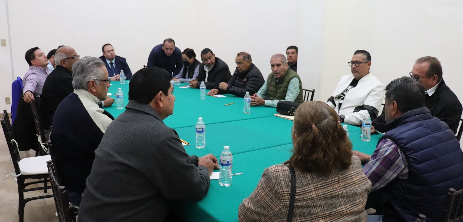 El secretario de finanzas, Omar Valadez Macías encabeza reunión con representantes de maestros jubilados de telesecundaria
