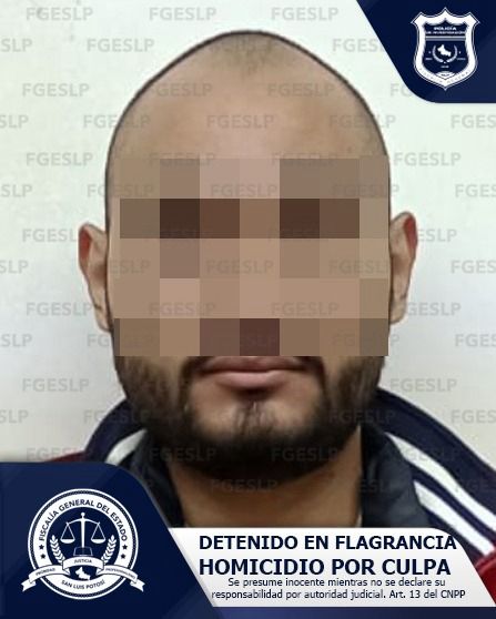 Elementos de la Policía de Investigación (PDI) de la Fiscalía General del Estado de San Luis Potosí (FGESLP) realizaron el aseguramiento en flagrancia de Kevin “N”, un hombre de 25 años de edad que estaría relacionado en la comisión del delito de homicidio por culpa.