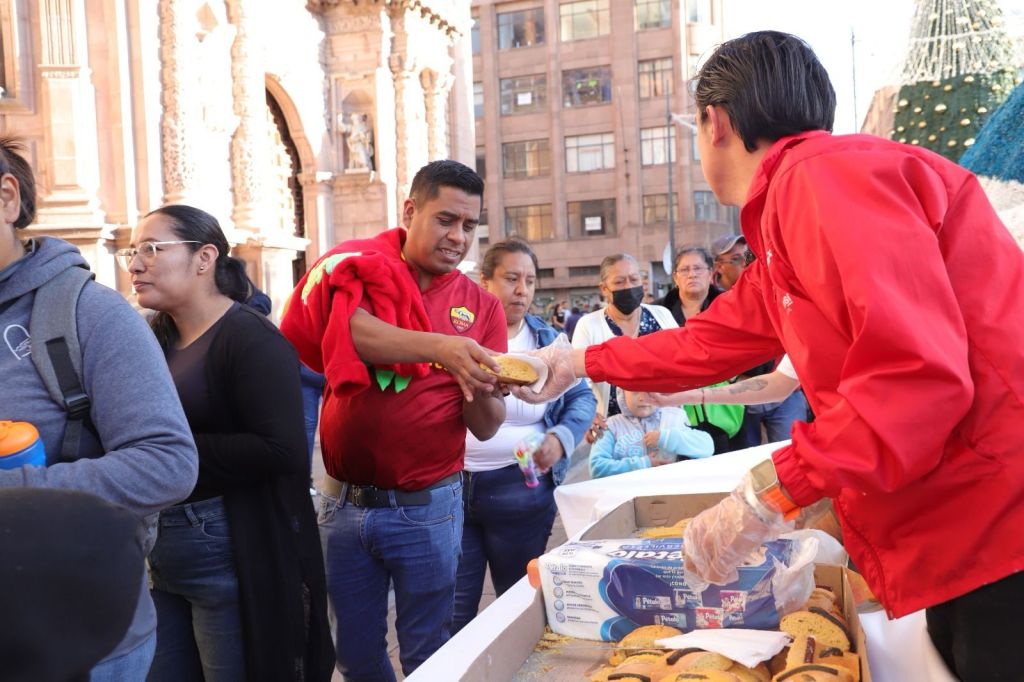 Asimismo, las y los asistentes pudieron degustar de este tradicional pan, acompañado de un chocolate caliente, ya que niños, jóvenes y adultos llevaron sus propias tazas y termos, para evitar usar vasos desechables y contribuir así al cuidado del medio ambiente.