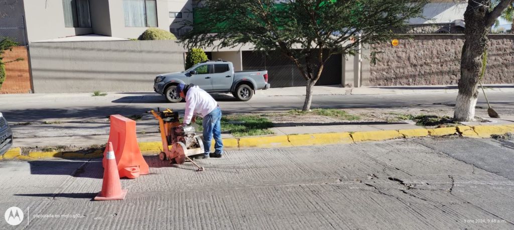 También en la calle Montes Kelut, entre Cordillera Arakan y Sierra Leona, se realizan trabajos para la colocación de material de concreto; por lo que está en proceso la rehabilitación de la superficie de manera inicial con la apertura de caja, corte del concreto dañado y la preparación para verter el material.