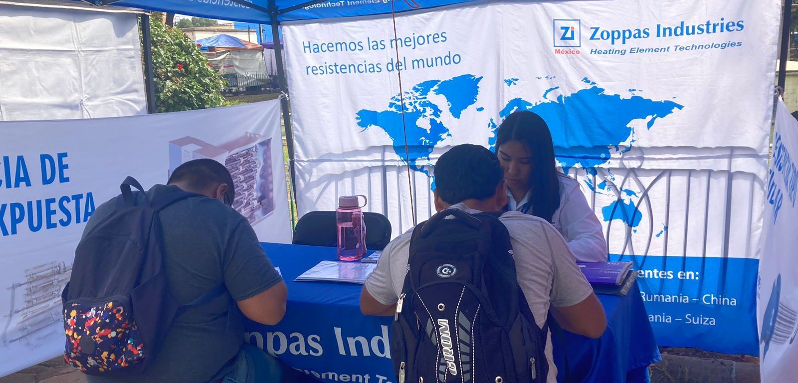 Entre las empresas nacionales e internacionales que participan en este pabellón se encuentran: GM, Mabe, Draxlmaier, Aceros San Luis, Allied Universal, Valeo Alternadores, Valeo Wiper, Valeo Térmico, Best Job, Guardias Goliat, Herdez, Apelsa, Peasa, Vitromex, Tecnopiso, Tarimas y Maderas Durango, Nacobre, Transporte Vencedor, Mitsimu, Grupo Maya, Grupo Midamo, Schnellecke, Oleico, Ryder Capital, Zoppas Industries, Siix, Diagnóstico de Capital Humano, Hiring Space, Edscha y Gestam.