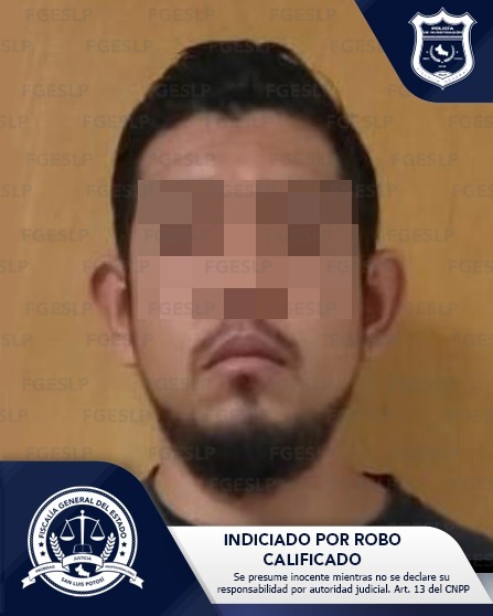 La Policía de Investigación (PDI) de la Fiscalía General del Estado de San Luis Potosí (FGESLP) realizó la detención Onésimo «N» en seguimiento de un mandamiento judicial, debido a que es señalado del delito de robo calificado.