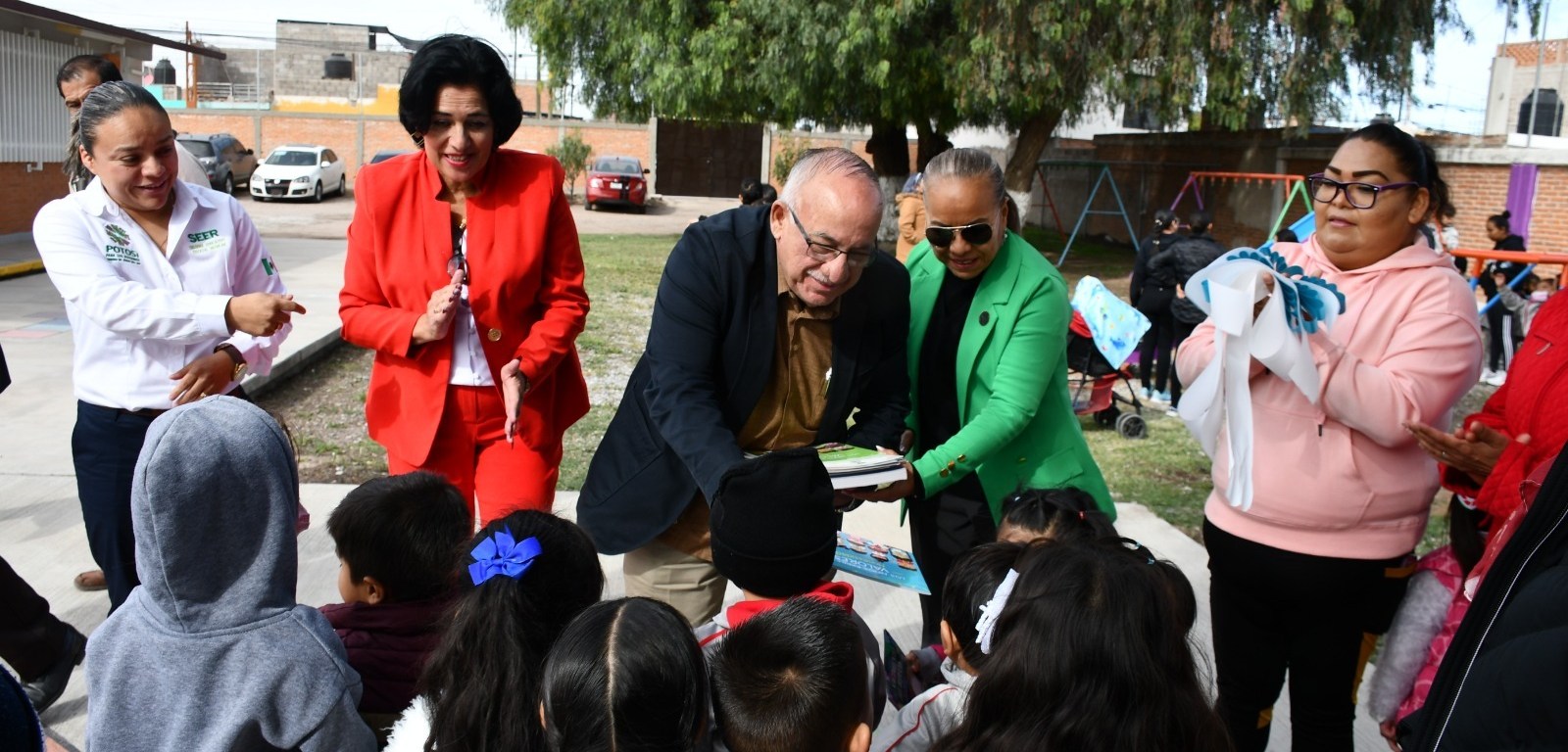 Para promover el deporte y la sana recreación durante la primera infancia y trabajar en el desarrollo motriz de niñas y niños en un ambiente de diversión y aprendizaje, el Sistema Educativo Estatal Regular (SEER), entregó una resbaladilla, un pasamanos y un par de sube y baja infantiles en apoyo al jardín de niños, Alicia Palomares Padilla en la capital potosina.