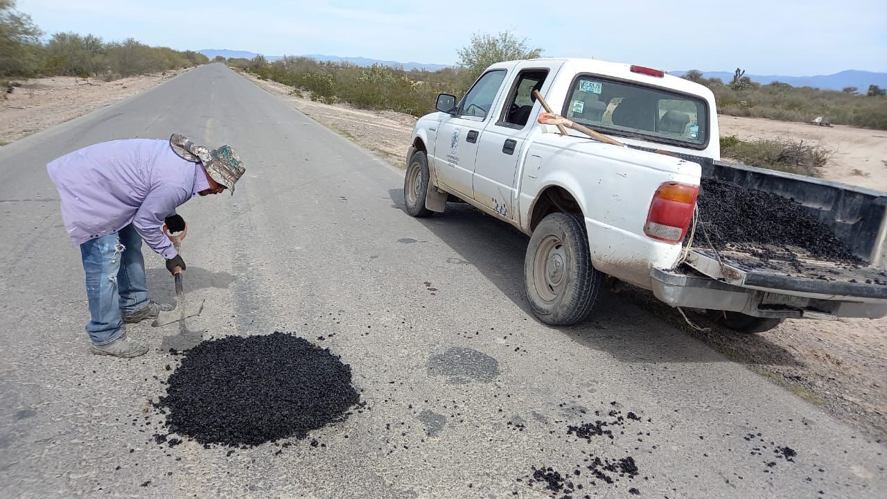 Se amplían los trabajos de bacheo en vías importantes como las carreteras que conectan Bocas con La Melada y González al Mezquite.