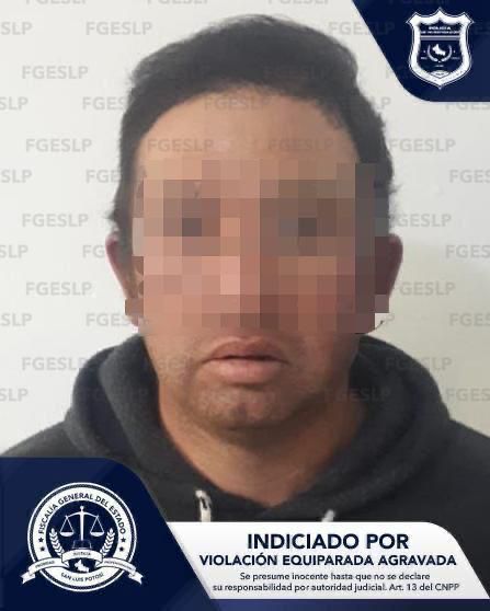 Por el delito de violación equiparada agravada, la Fiscalía General del Estado de San Luis Potosí (FGESLP) informa que cumplimentó una orden de aprehensión en contra de un sujeto de 34 años de edad, señalado de haber abusado de una menor de identidad reservada en el municipio de Santa María del Río.