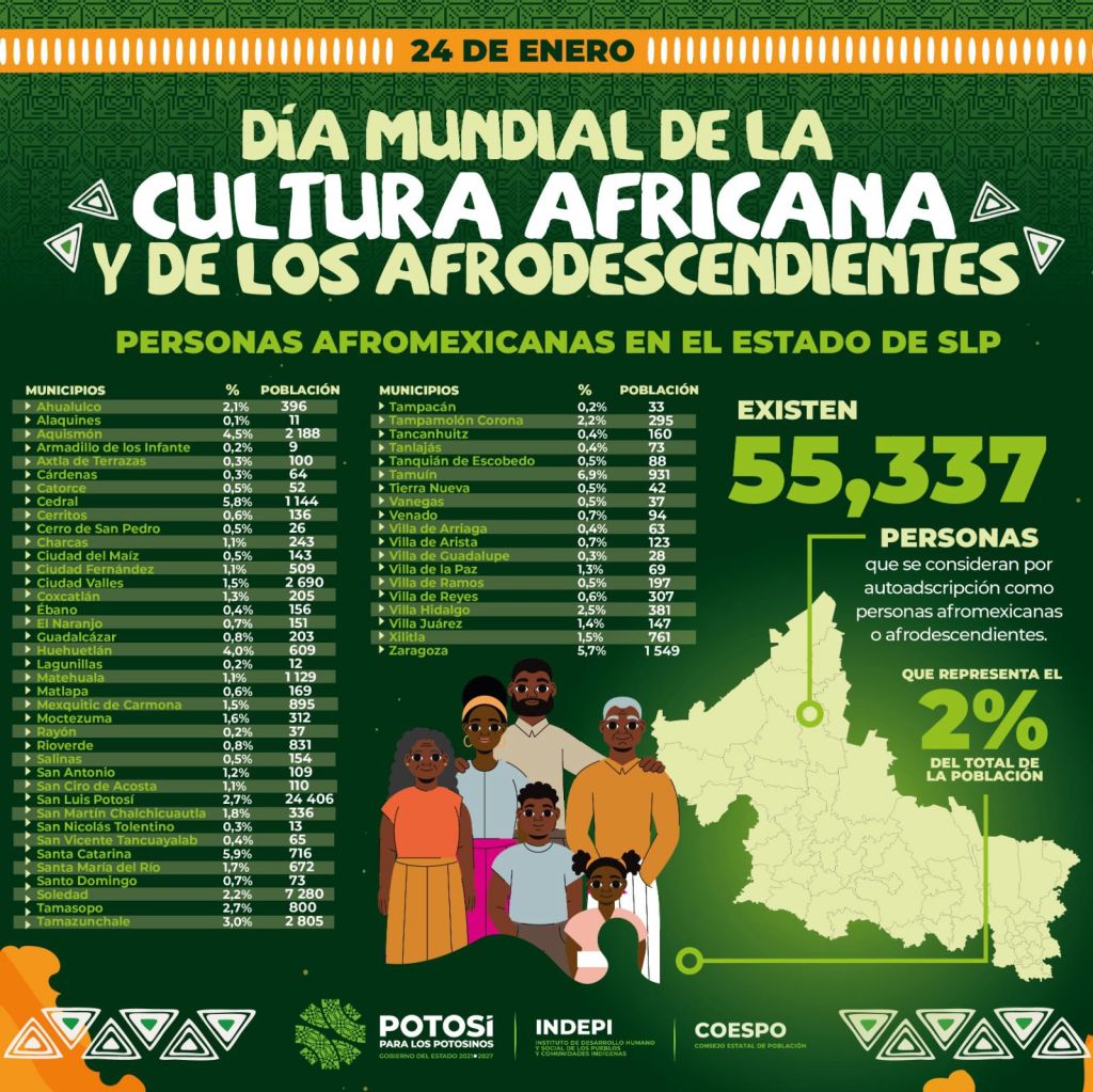 En San Luis Potosí radican 55 mil 337 personas afrodescendientes distribuidas en los diferentes municipios