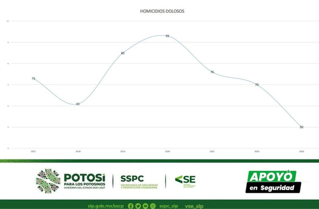 San Luis Potosí registró, en materia de seguridad durante 2023, el mejor cierre de año en casi una década, gracias a la estrategia y apoyo del Gobierno del Estado, delitos de alto impacto, mostraron la menor incidencia al cierre del 2023 comparado con el mismo periodo de los últimos nueve años, de acuerdo con información del Secretariado Ejecutivo del Sistema Nacional de Seguridad Pública (SESNSP).