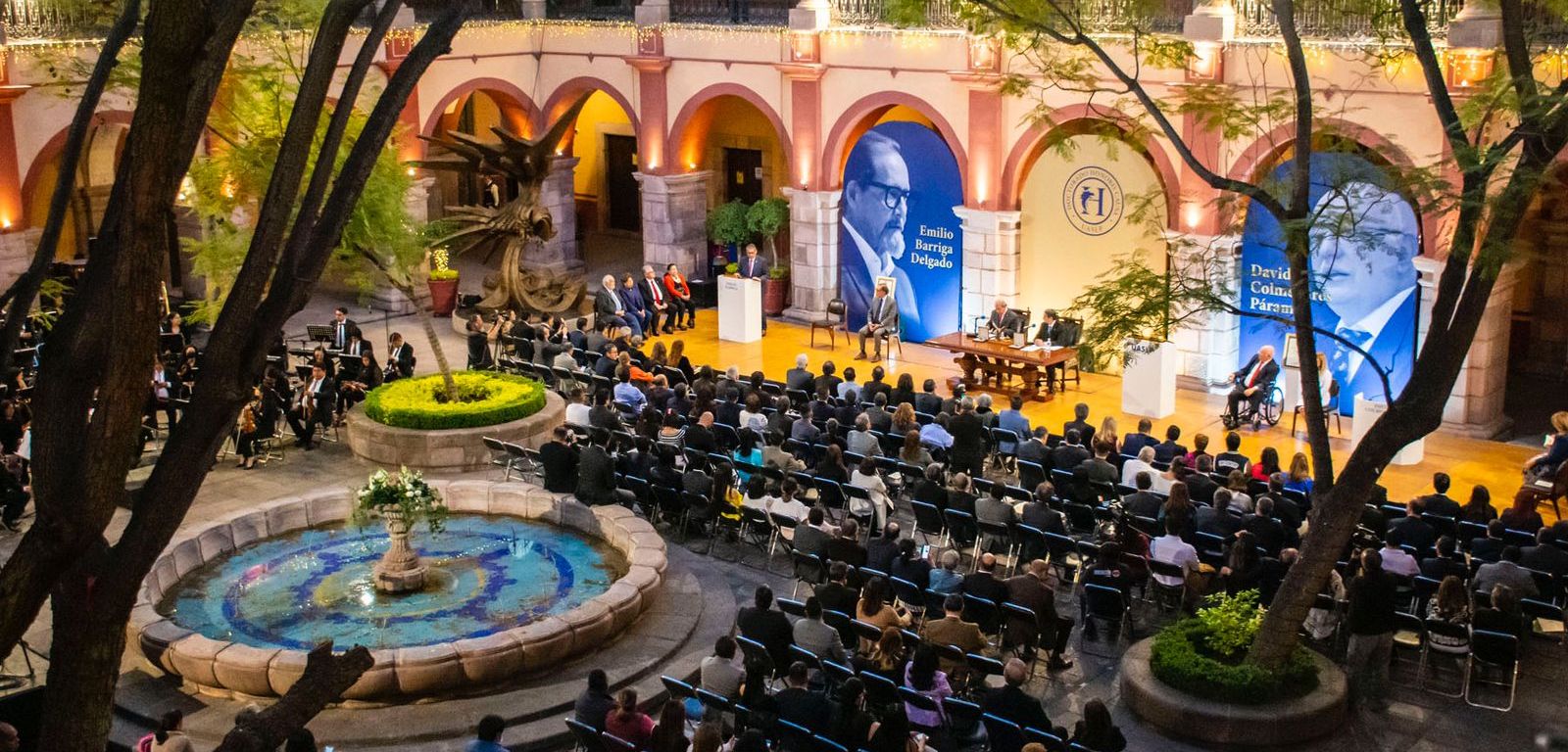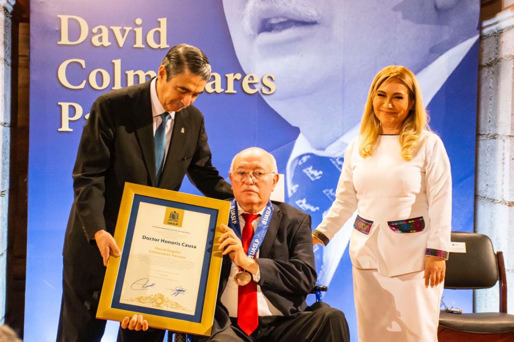 En una ceremonia enmarcada en el Patio del Edificio Central, la Universidad Autónoma de San Luis Potosí (UASLP), por conducto del rector, Dr. Alejandro Javier Zermeño Guerra, y con el respaldo de diferentes universidades del país, ANUIES y Amereiaf, otorgó doctorados honoris causa al Dr. David Rogelio Colmenares Páramo y al Mtro. Emilio Barriga Delgado. El evento contó con la presencia de autoridades universitarias, representantes de los tres niveles de gobierno, invitados de honor, así como rectores y rectoras de diversas universidades de la República.