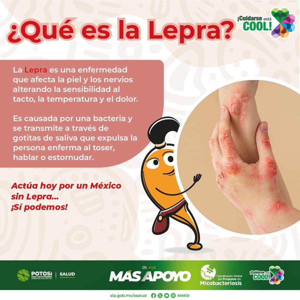 La lepra es una enfermedad infecto contagiosa milenaria, causada por la bacteria Mycobacterium leprae, que se transmite por gotas nasales y orales (gotas de flügge) que se expectoran cuando un enfermo que no recibió tratamiento, tose o estornuda y una persona sana lo respira. Esto ocurre principalmente cuando hay un contacto estrecho y frecuente con pacientes enfermos sin tratamiento, el Gobierno del Estado a través de los Servicios de Salud, retomó la búsqueda intencionada de esta enfermedad, con el propósito de detectarla y poder atender a quienes la padecen.
