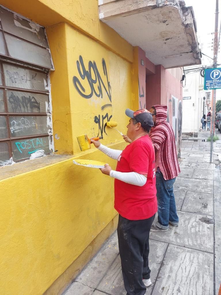 Personal de la Unidad de Gestión del Centro Histórico trabajó en eliminación de graffiti y publicidad no autorizada, limpieza de espacios públicos y mejoramiento de mercados municipales.