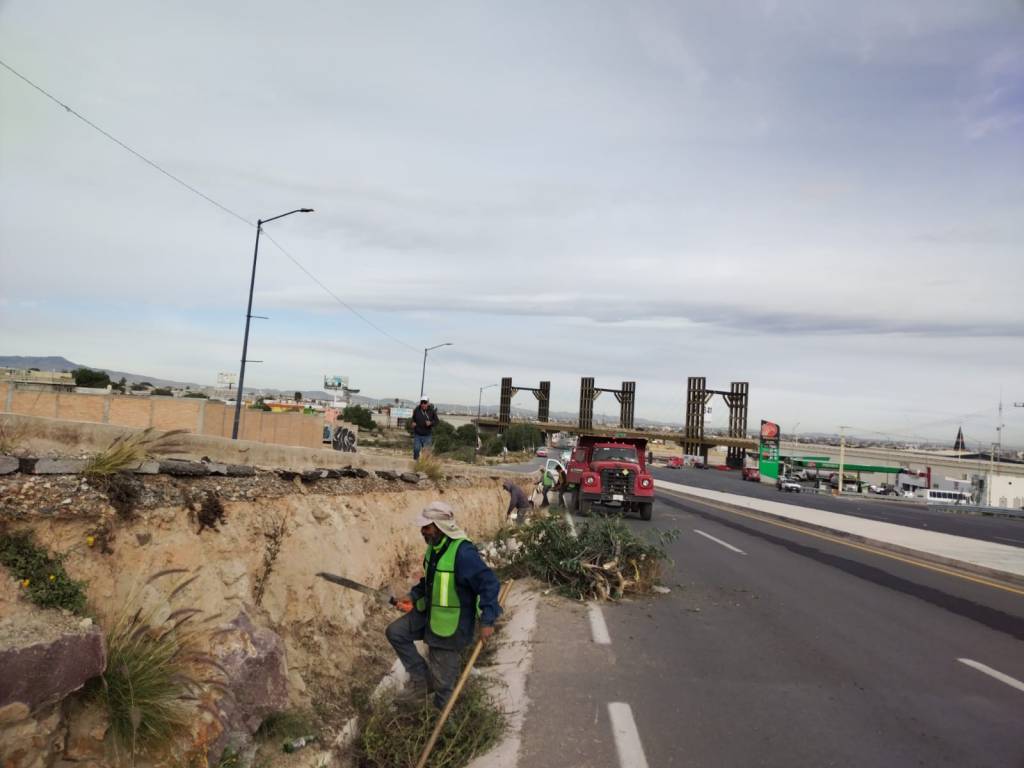De acuerdo con la instrucción del Gobernador de San Luis Potosí, Ricardo Gallardo Cardona, y tras el anuncio de la construcción del puente que conectará a esta vía con el eje 122, el titular de la JEC, Francisco Reyes Novelo, informó que cuadrillas de la dependencia estatal trabajan en la conservación periódica y rutinaria con trabajos de desmonte, chapoleo y limpieza de las laterales de la vía, con el fin de mantenerla en buenas condiciones para la futura continuación del proyecto.