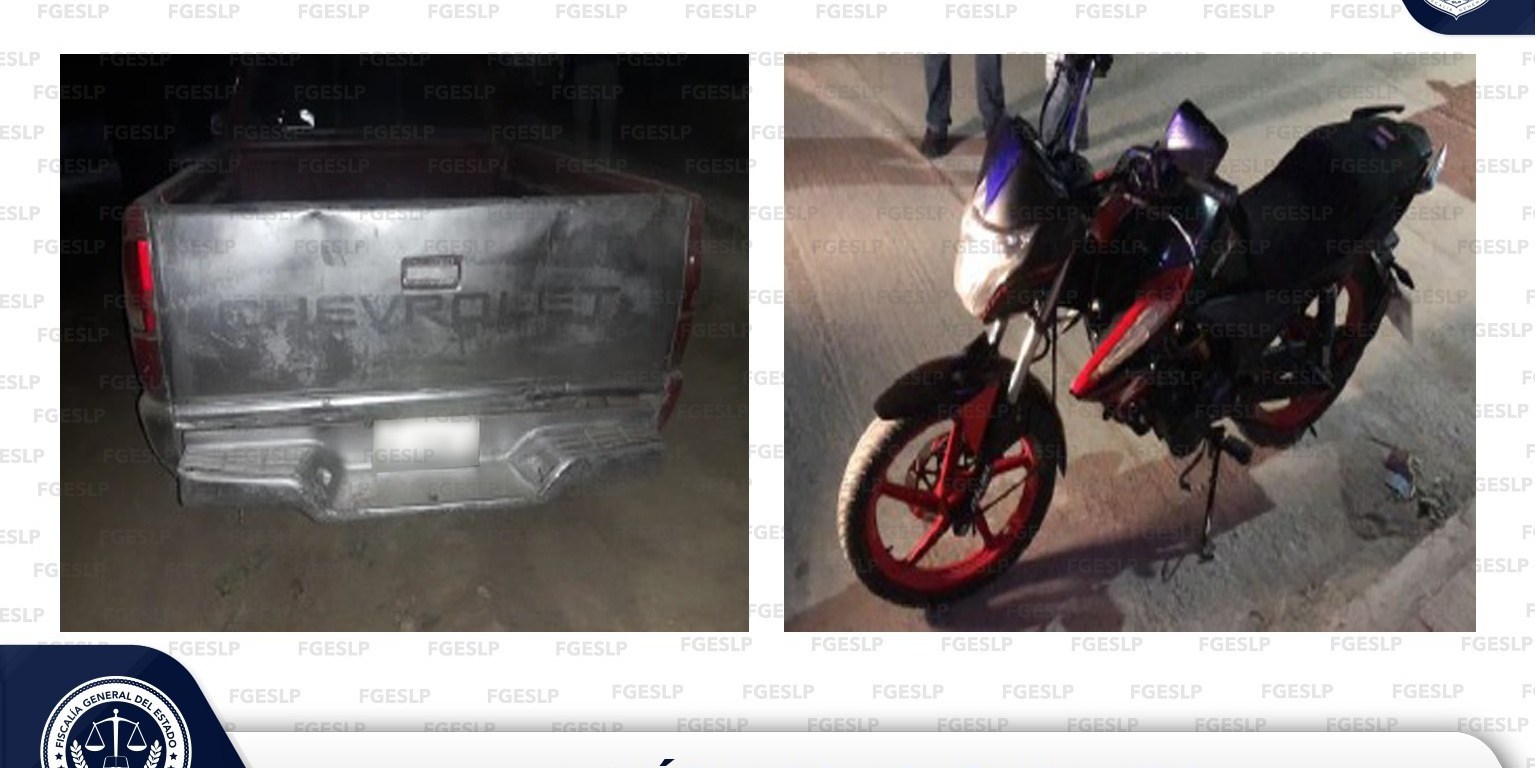 La Fiscalía General del Estado de San Luis Potosí (FGESLP) a través de la Policía de Investigación (PDI) efectuó el aseguramiento de una camioneta y una motocicleta en la Entidad potosina.