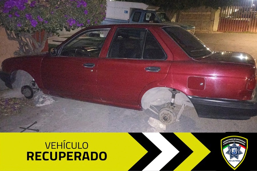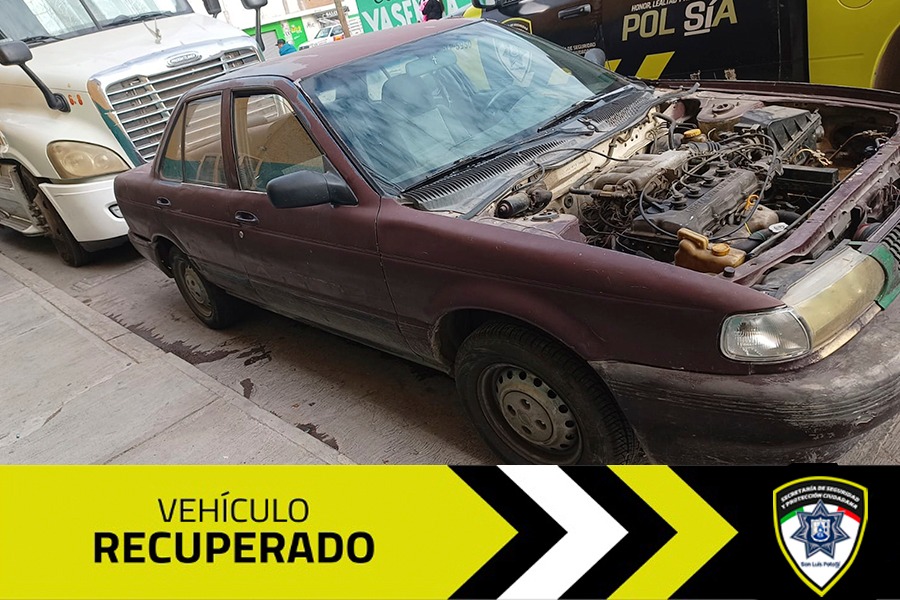 El cuarto vehículo recuperado es un sedán marca Nissan Tsuru color rojo, mismo que fue reportado a través del C4 Municipal en la avenida Santa María de la colonia Libertad, en la delegación de Villa de Pozos, oficiales municipales lo ubicaron en condiciones evidentes de desvalijamiento, de acuerdo a la base de datos policial cuenta con reporte de robo del día martes 30 de enero del año en curso.