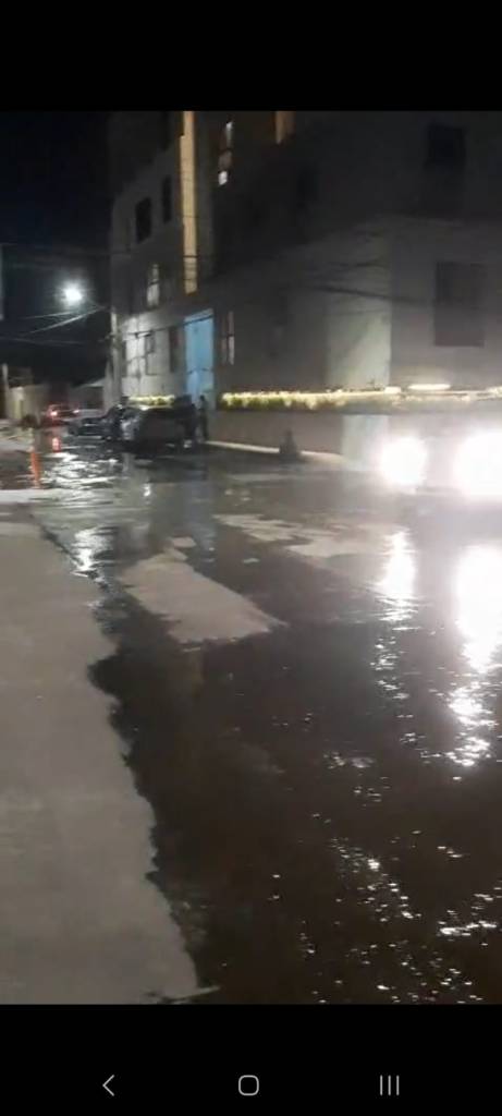 Una cuadrilla de plomeros especialistas del organismo operador se presentó en el primer punto la intersección de Cascada y Lluvia, detectando que la empresa había roto un ducto de la red pública de agua, y sin avisar sobre el daño “resolvieron” colocando un pedazo de manguera en el tubo pvc y debido a que la reparación era de mala calidad, comenzó el desperdicio.