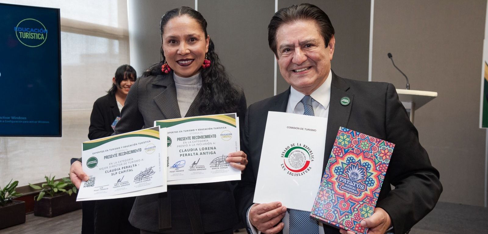 El Ayuntamiento de San Luis Capital tuvo una destacada representación en la tercera edición del «Homenaje a Líderes Destacados en la Industria Turística» de los Premios Expertos en Turismo, el cual se realizó en la sede el Senado de la República, que se convirtió en el epicentro de la industria turística nacional durante algunas horas. La Directora de Turismo Municipal, Claudia Peralta Lorena Peralta Antiga, estuvo entre los galardonados, quien fue reconocida con el “Premio al Experto del Año”, “Premio a la Inclusión” y “Premio al Mejor Director de Turismo”, destacando su trabajo y compromiso con la accesibilidad y la diversidad en el turismo.