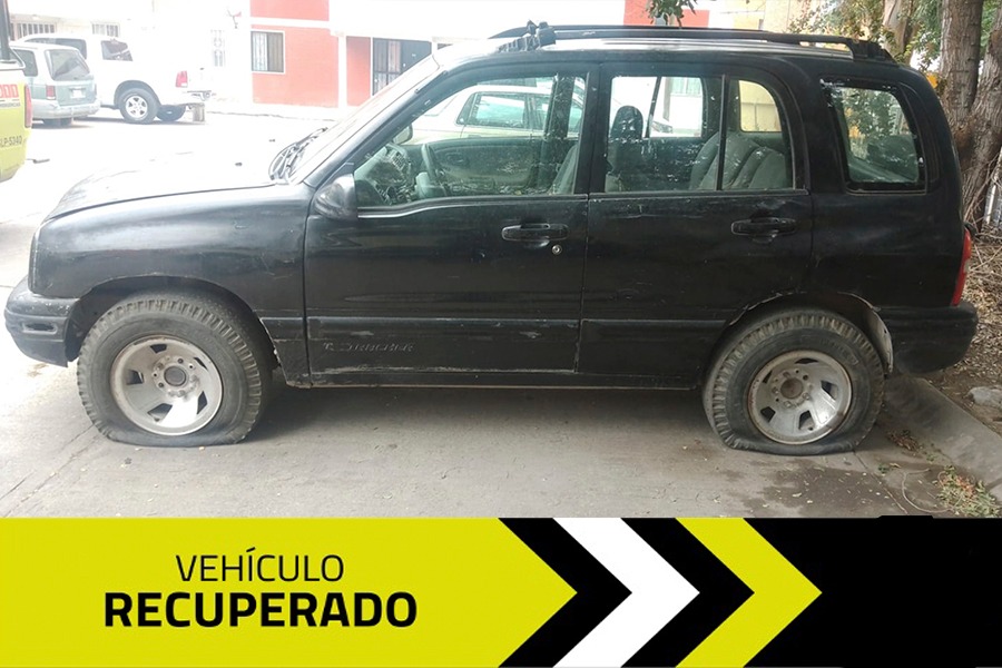 El segundo hallazgo se efectuó en el cuadrante sur, cuando agentes de Guardia Municipal realizaban recorridos de prevención en las inmediaciones de los condominios Florencia, fue en la calle David que visualizaron una camioneta marca Chevrolet Tracker color negro.