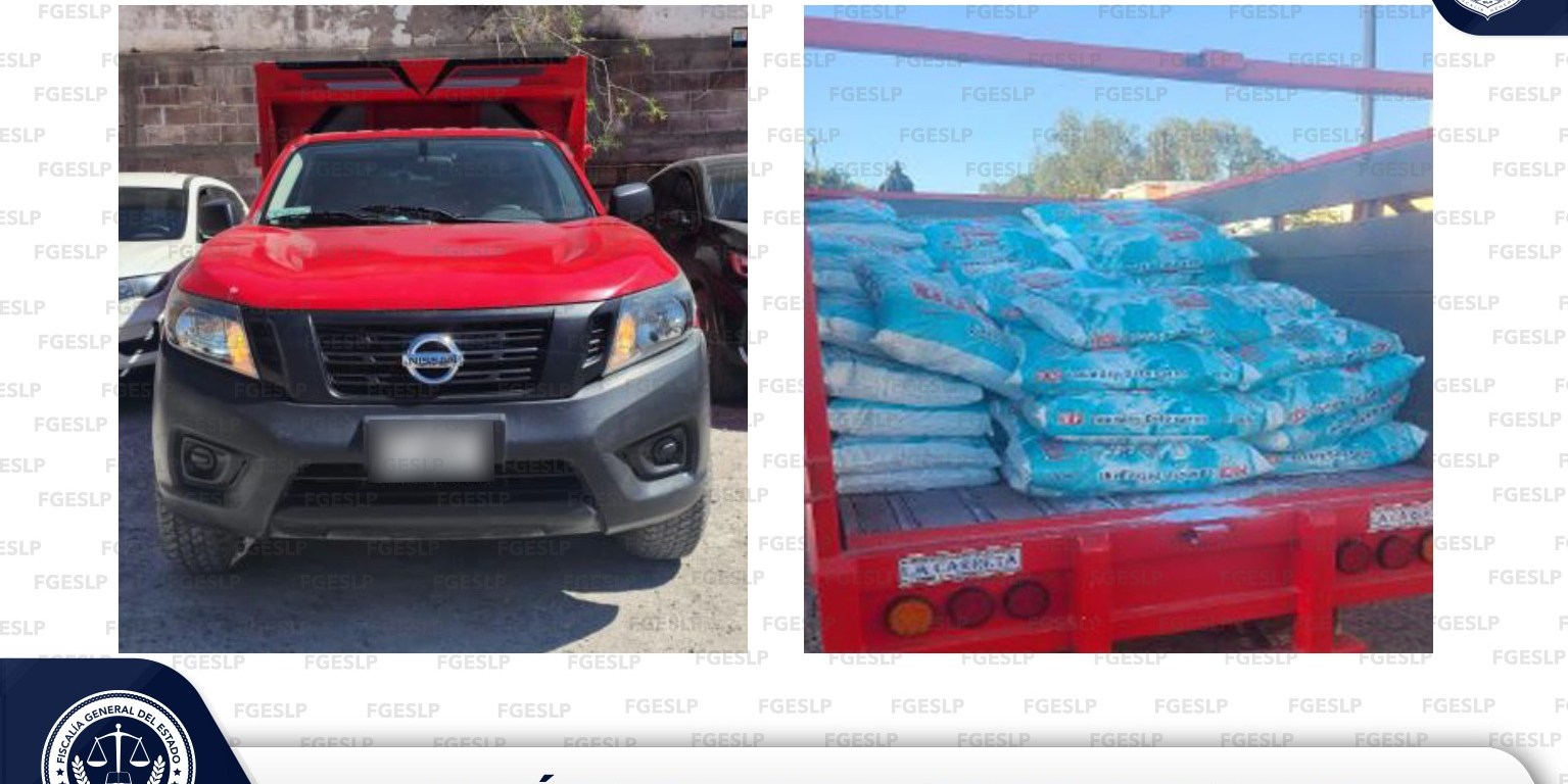 Posteriormente, los individuos fueron asegurados y se les encontró en posesión de una camioneta roja, marca Nissan, tipo NP300, con redilas, así como de diversas bolsas de jabón en polvo.
