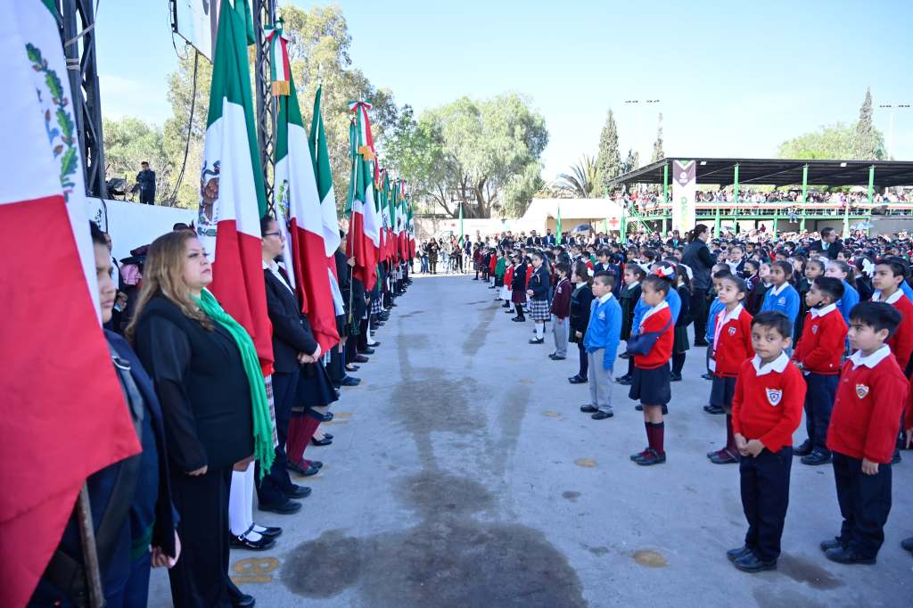 En el tradicional evento el Gobernador llamó a niñas y niños a honrar, respetar y sentir orgullo por los símbolos patrios y los valores de identidad nacional