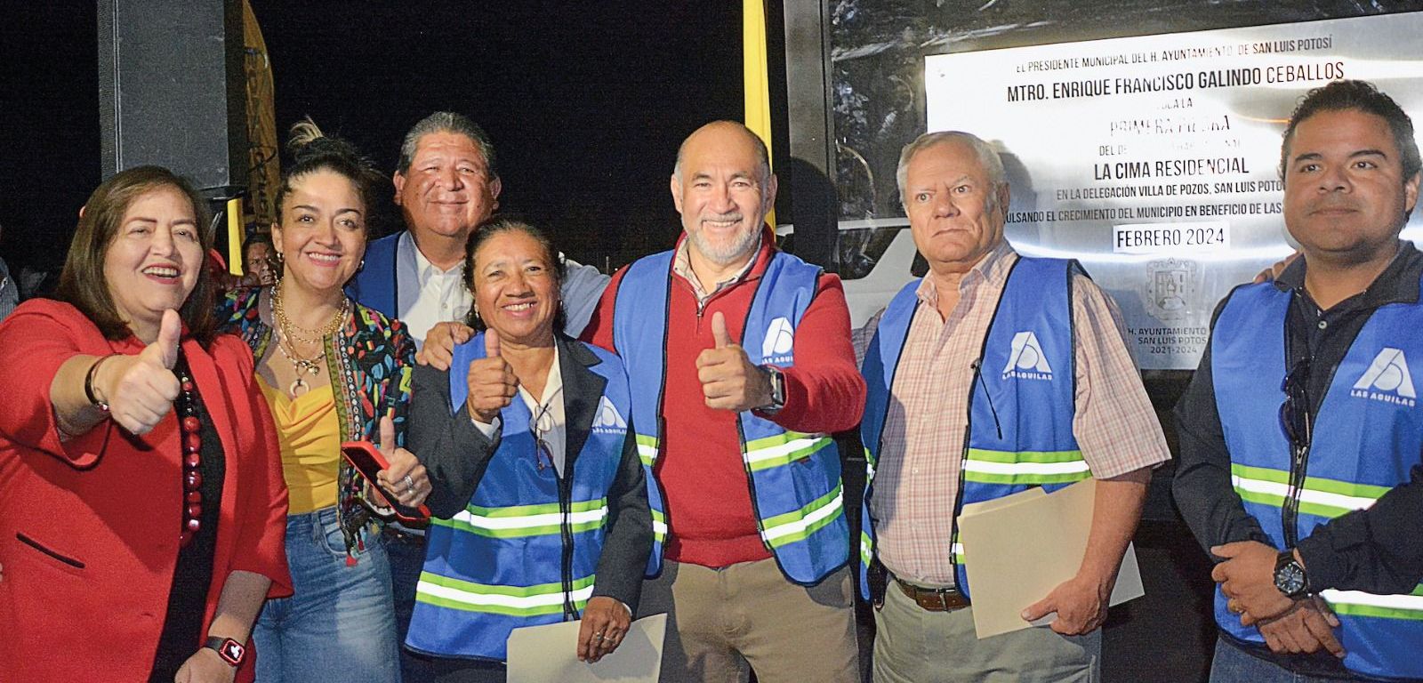 El Alcalde Enrique Galindo felicitó al Grupo Constructor Las Águilas y al Arquitecto Alejandro Leautaud Zamanillo por la colocación de la primera piedra para este importante proyecto, que potencializa a la Delegación de Villa de Pozos. El Presidente Municipal agradeció a la Cámara Nacional de la Industria de Desarrollo y Promoción de Vivienda (Canadevi) por solidarizarse con la ciudad en medio de la crisis hídrica, al donar pozos y agua para repartir en camiones cisterna a las colonias de la Capital