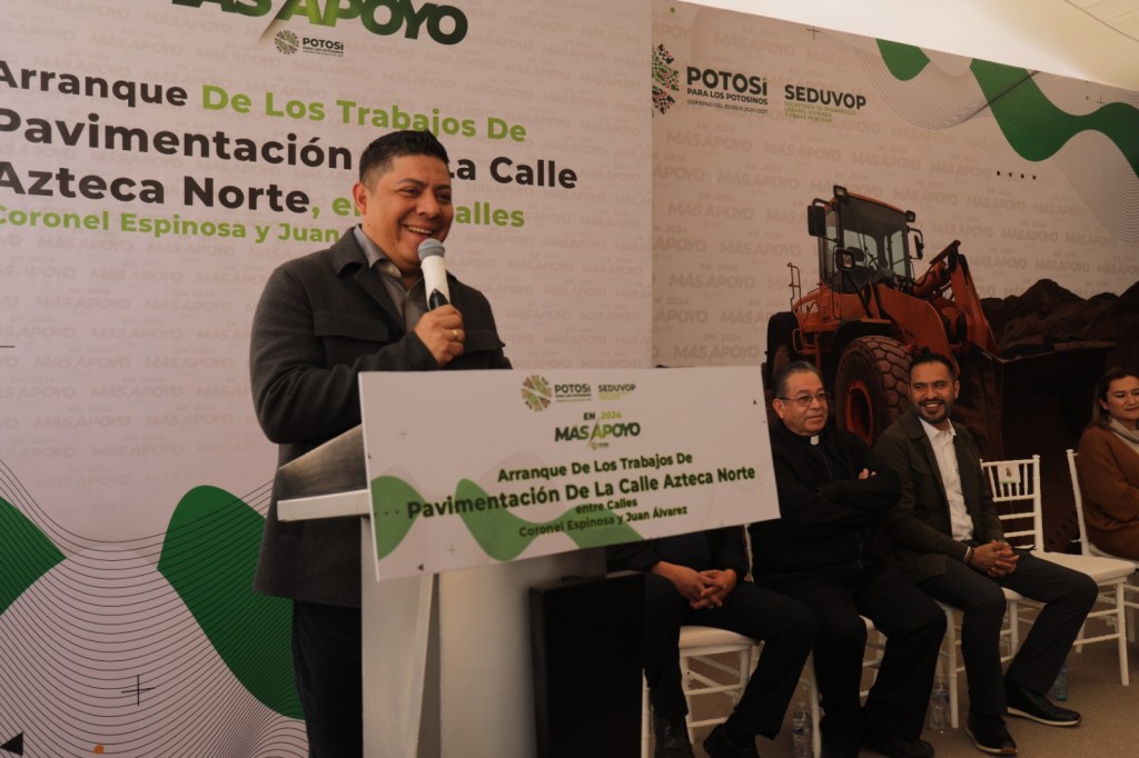 Miles de familias del tradicional y mágico barrio de Tlaxcala, reciben más apoyo con la rehabilitación de la calle Azteca Norte, entre Coronel Espinosa y Juan Álvarez, que arrancó este jueves el Gobernador de San Luis Potosí Ricardo Gallardo Cardona, con una inversión de casi 2.3 millones de pesos, con lo que se generará mayor plusvalía en el sector y brindará mayor seguridad a las y los habitantes y usuarios.