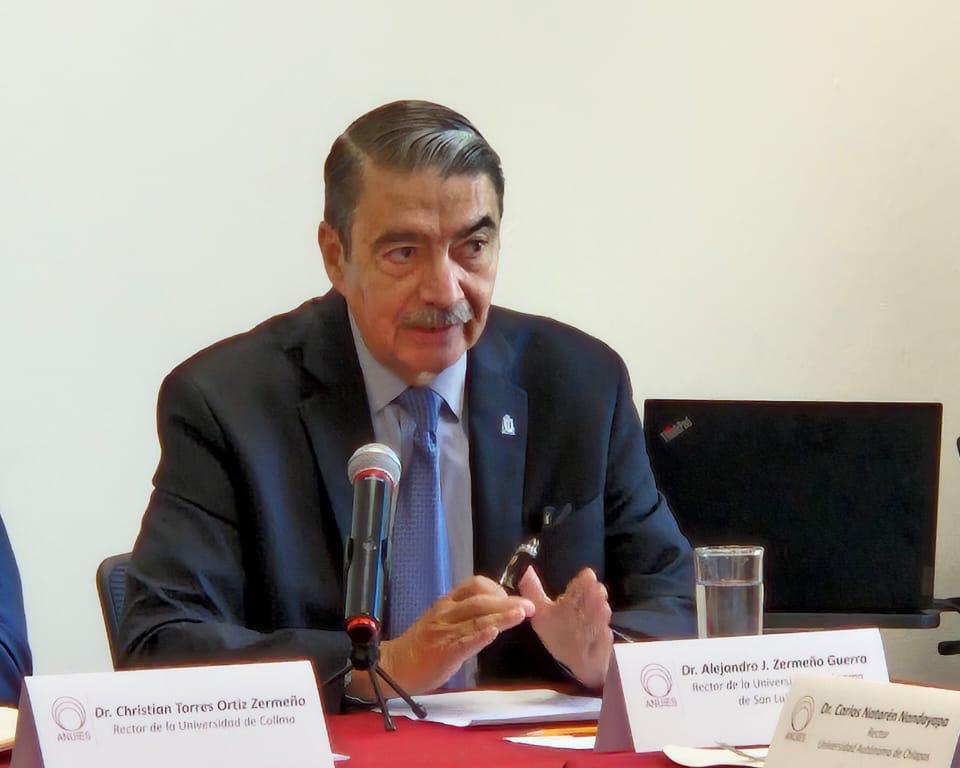 En un esfuerzo conjunto por fortalecer la educación superior en México y contribuir a la conformación de proyectos de nación, el doctor Alejandro Javier Zermeño Guerra, rector de la Universidad Autónoma de San Luis Potosí (UASLP), ha participado en representación de la comunidad universitaria en foros convocados por la Asociación Nacional de Universidades e Instituciones de Educación Superior (ANUIES).