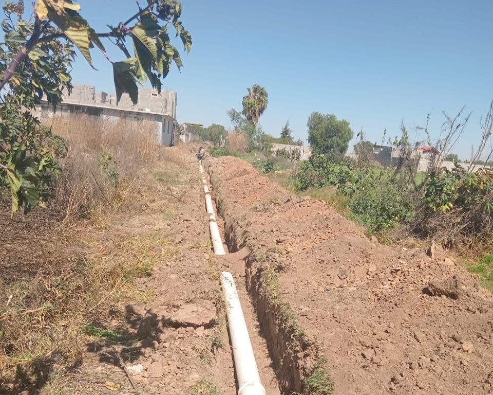 Una zona con desabasto en la delegación de Villa de Pozos es beneficiada con una nueva red de agua, construida por el Nuevo Interapas en el ejido La Libertad.