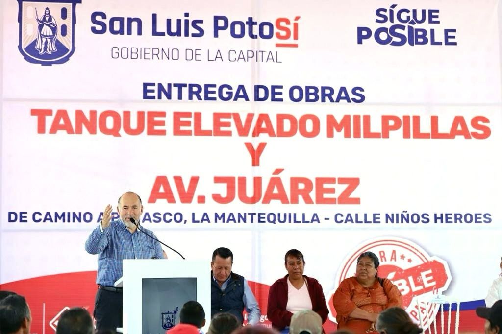 Al entregar la rehabilitación de avenida Benito Juárez en la localidad de Milpillas, del tramo de Camino a Peñasco a la calle Niños Héroes, el Presidente Municipal de San Luis Potosí, Enrique Galindo, resaltó la unión y la organización de la población de este sector, quienes gestionaron esta pavimentación donde antes sólo había terracería, por lo que ahora esta arteria será la avenida principal que conecta a distintos puntos a los que asisten de manera recurrente la población de esta zona: “Con estas obras se piensa en las niñas, niños, adolescentes y es útil para toda la población porque facilitará el traslado y mejorará la movilidad, además de permitirnos atender la petición de quienes viven en comunidades rurales”, añadió el Alcalde Enrique Galindo Ceballos.