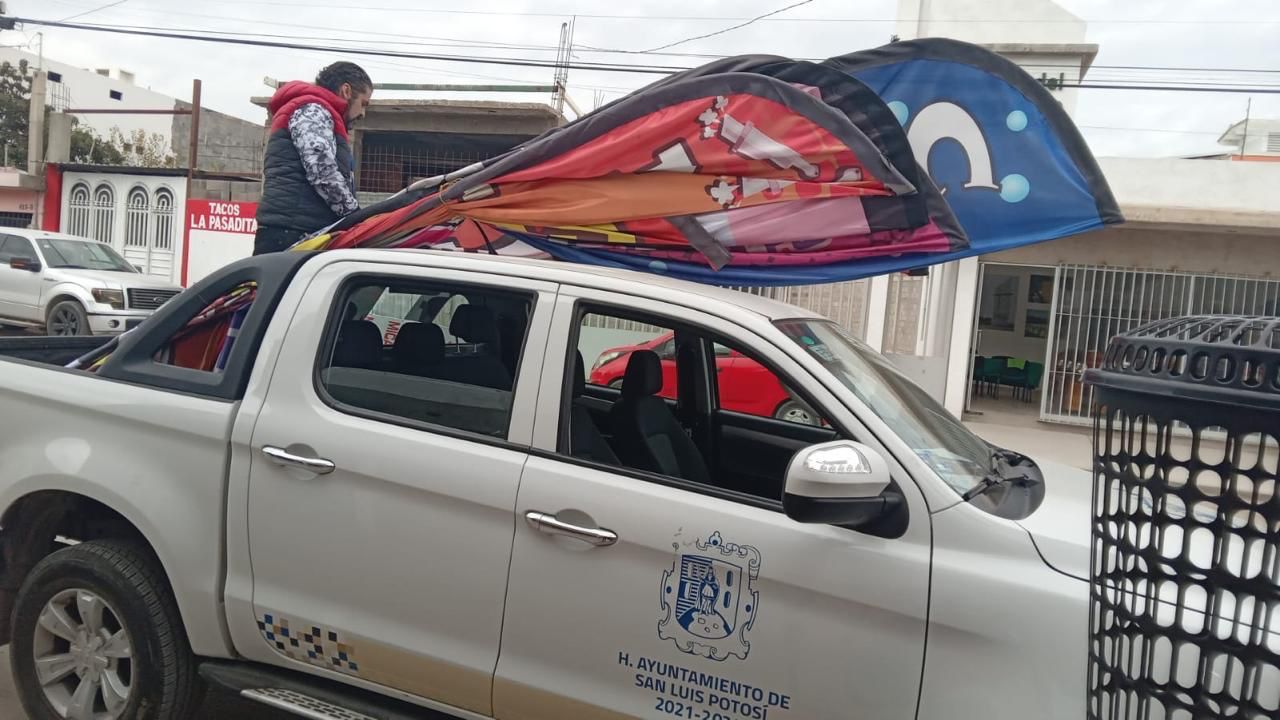 Los principales objetos que se han retirado son anuncios tipo tijera, anuncios tipo bandera, mesas, sillas, toldos, módulos, bocinas, cajas, mercancía y diversos objetos.