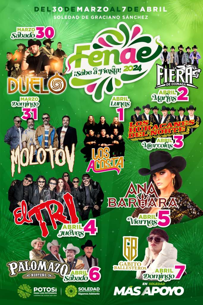 “Esto también es posible gracias al apoyo del Gobierno del Estado, gracias a nuestro Gobernador, Ricardo Gallardo Cardona, por su apoyo a esta gran fiesta y colaborar para que sea mucho mejor y la disfruten mucho todas las familias que se hagan presentes, es importante reconocer el impulso de la realización de la FENAE que generan materia de derrama económica en Soledad y sus alrededores ya que se prevé que dejará a la región hasta 50 millones de pesos de derrama para todos los sectores”.
