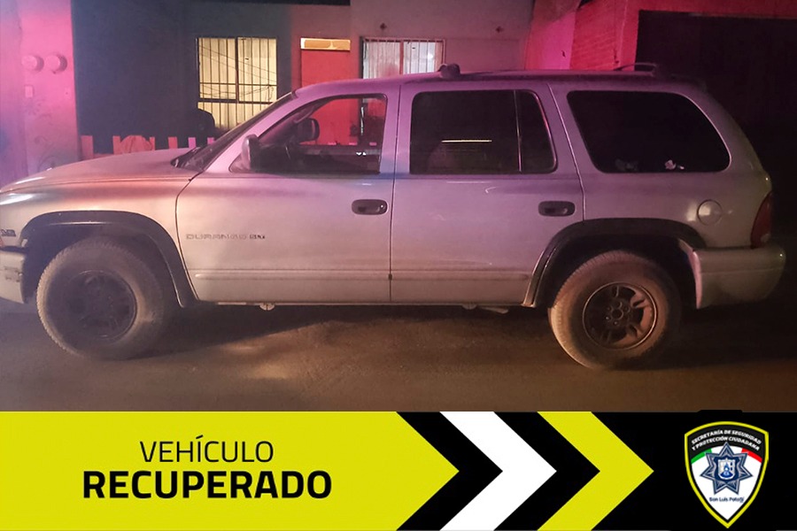 El segundo vehículo localizado es una camioneta marca Dodge Durango color gris, se ubicó en la calle de Mixtecos próximo a la avenida Coras en la colonia Industrial San Luis.