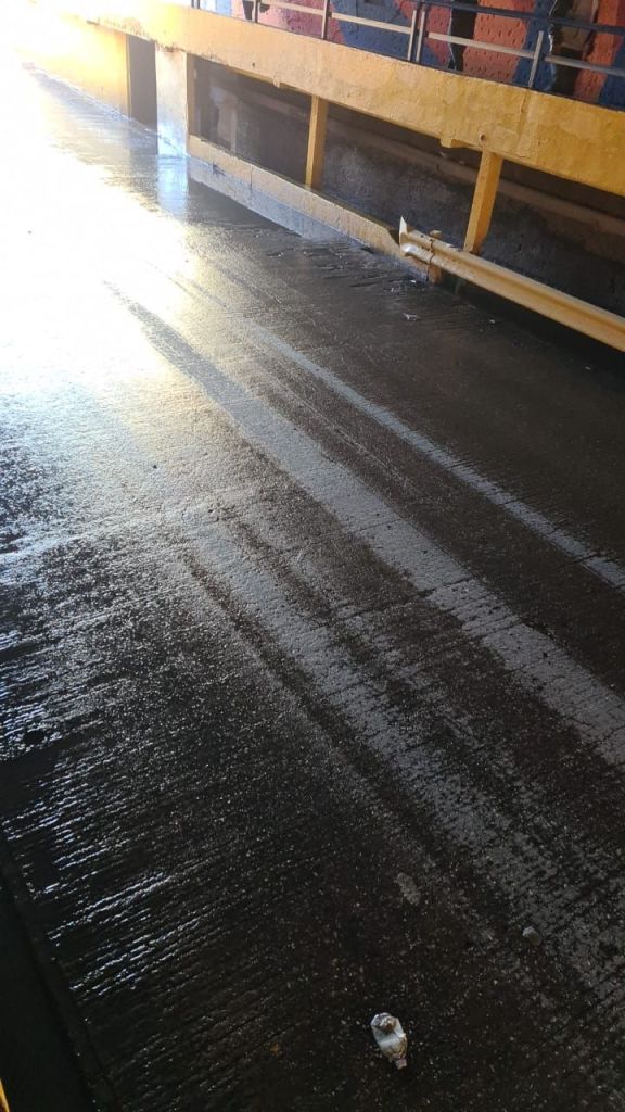 Esta mañana, el cárcamo ubicado en el puente a desnivel Manuel J. Othón recibió trabajos de mantenimiento e intervención, por lo que a causa del desfogue, hubo presencia de agua durante algunas horas en el paso a desnivel.