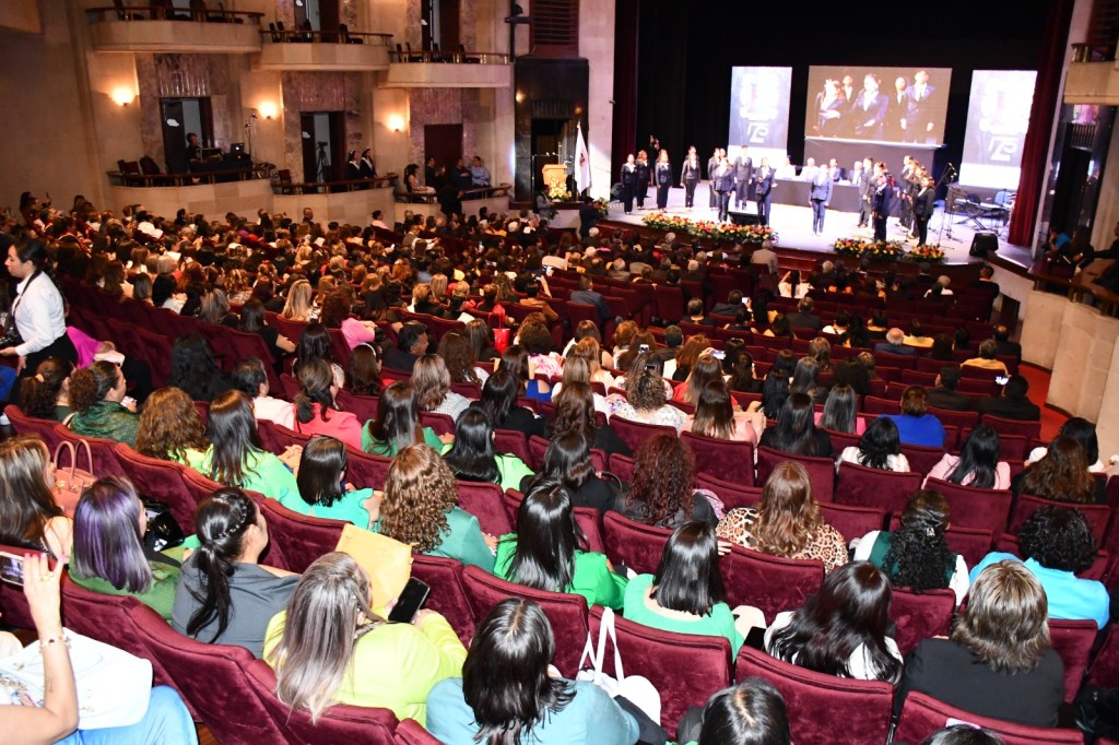 En el Teatro de la Paz, personal docente, administrativo, alumnado y egresados reconocieron a la institución como pilar fundamental en la formación de docentes