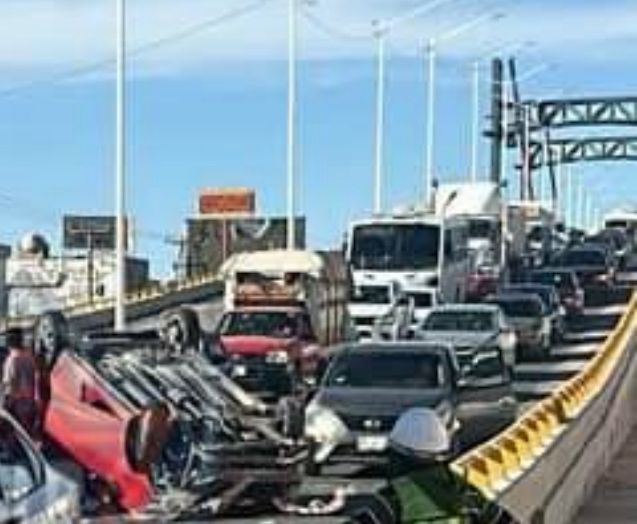 La tarde de este martes 5 de marzo se reporto un vehículo color rojo volteado en la bajada del Puente de la 71 y Periférico.