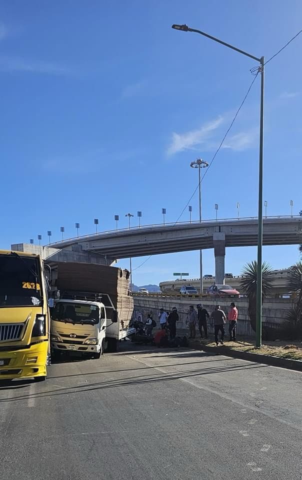 También se reporto fuerte accidente entre un camión urbano y camioneta que transportaba cartón afectando a un motociclista que quedo herido en carretera a Matehuala.