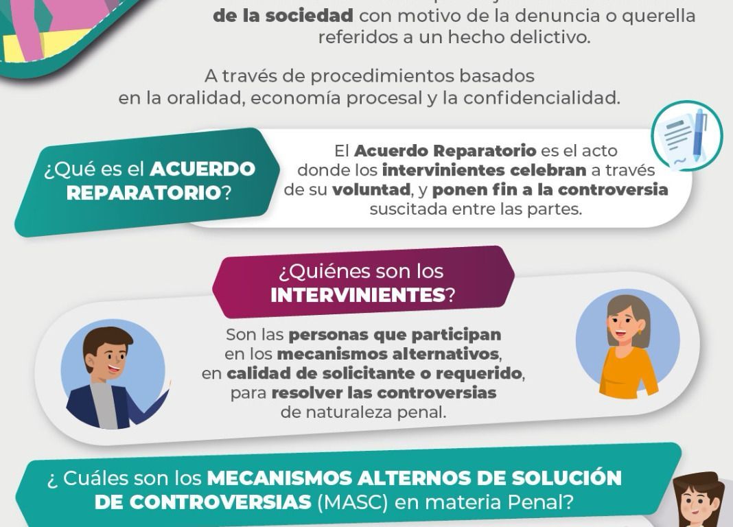 El propósito de esta iniciativa es lograr una resolución rápida y efectiva de la reparación del daño en casos susceptibles a ser atendidos mediante los citados Mecanismos Alternativos, bajo la guía de facilitadores certificados.