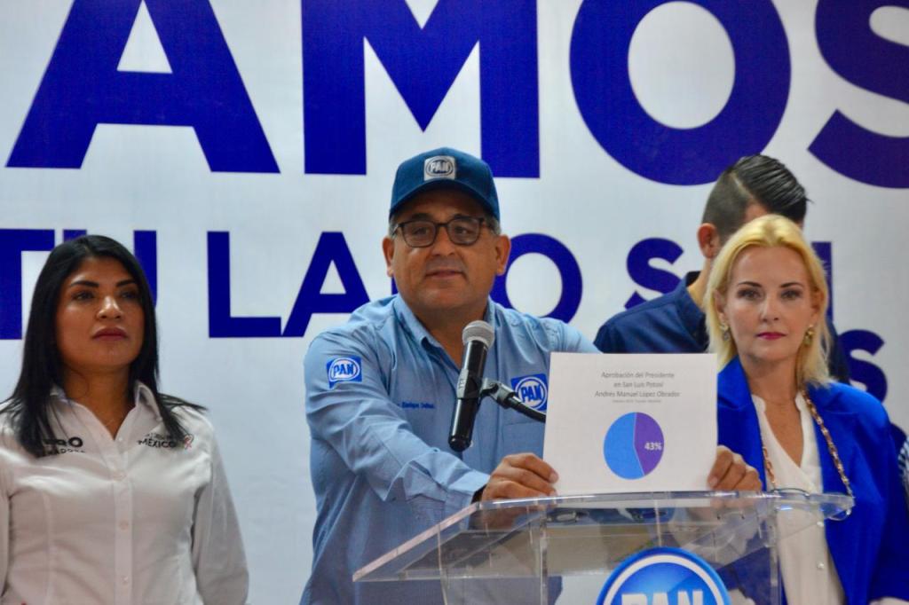 “Solamente el 43% de los ciudadanos de San Luis Potosí aprueban a Andrés Manuel López Obrador y ha venido bajando mes tras mes, y la gente nos dice queremos sacar a la 4T”.