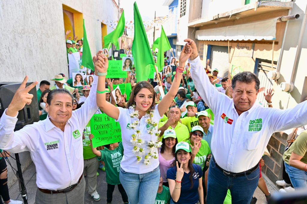 Acompañada por su compañero de fórmula al Senado de la República, Gilberto Hernández Villafuerte, y Oscar Bautista Villegas, candidato al tercer Distrito federal, Ruth González invitó a la población para que el próximo 2 de junio voten por las y los candidatos del Partido Verde a fin de garantizar que continúe la transformación, los programas sociales y los proyectos productivos y de infraestructura.