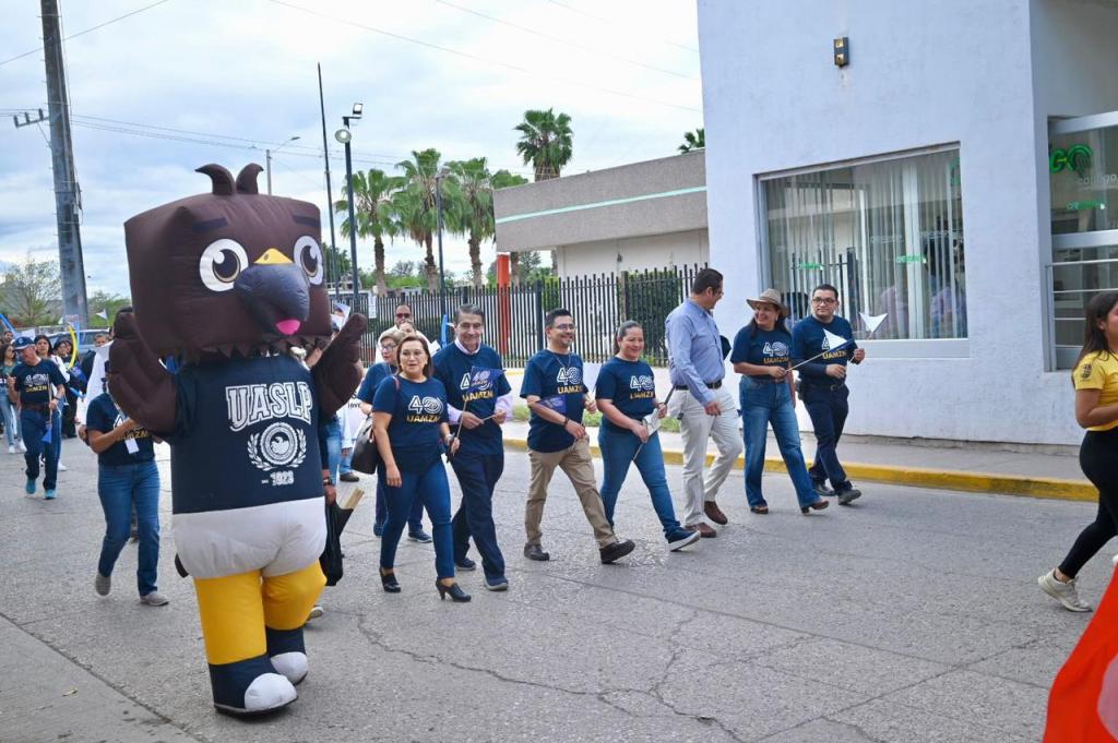 La plaza principal de Rioverde se convirtió en el epicentro de la celebración, donde convergieron estudiantes, docentes, administrativos, funcionarios y la comunidad en general. El licenciado Ramiro Rocha, uno de los visionarios fundadores de la Unidad, compartió emocionantes relatos sobre los inicios y la evolución de esta institución académica.