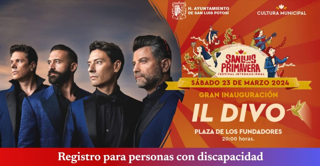 Para IL Divo, que es la inauguración del Festival Internacional San Luis en Primavera en Plaza Fundadores, se puede acceder a: (https://accesoscapitaldelsi.info/eventoPrim/23).